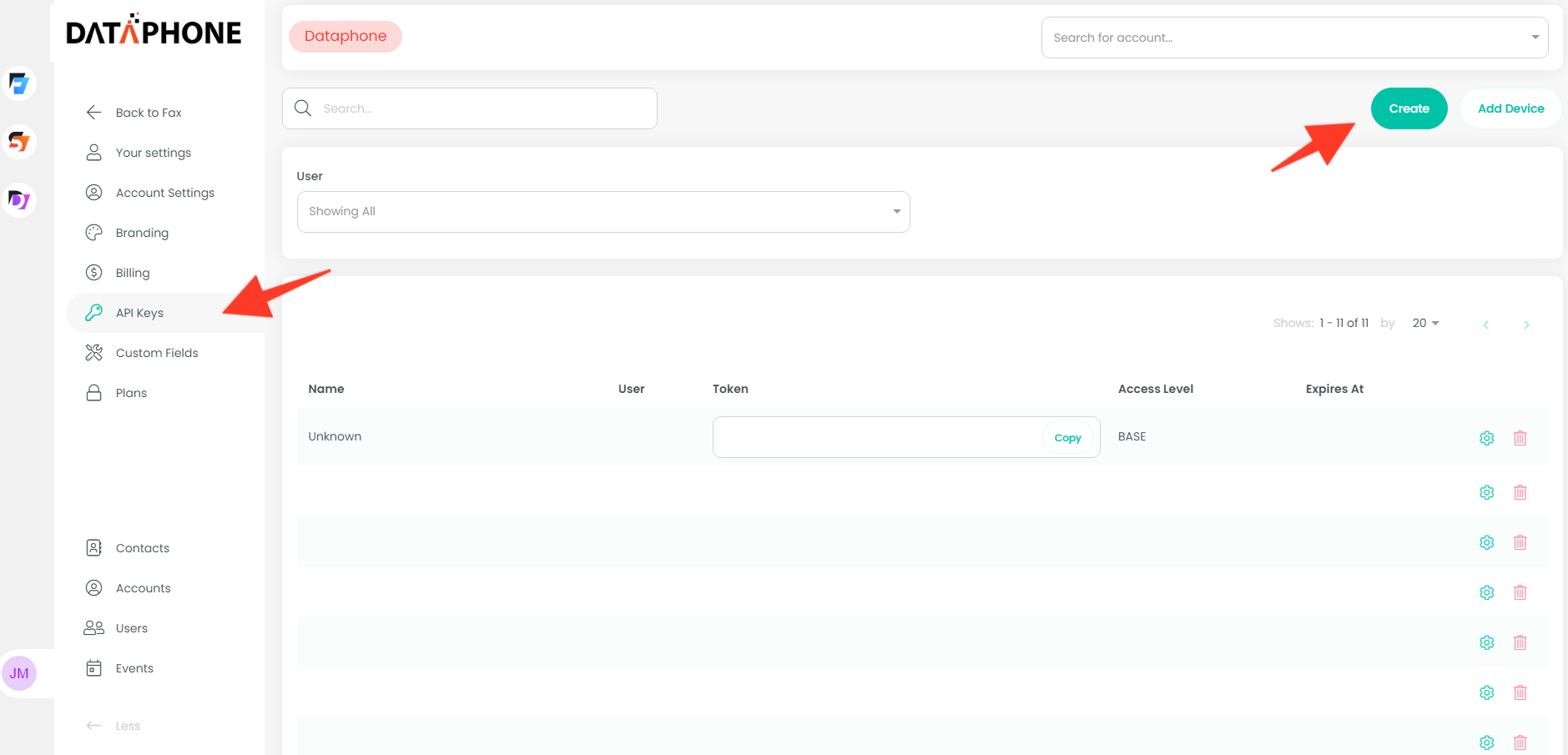 At the end of the installation process, you will be prompted to enter an Authorization Key (Token). This token can be created from the web portal in Settings > API Keys (see screenshots below). Click the Add Key button: