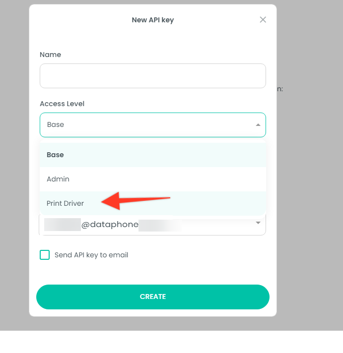 Type a name for the device you've installed the driver on (you can have multiple devices/keys), check the box next to "Print Driver" and click Create. This will create a new token.